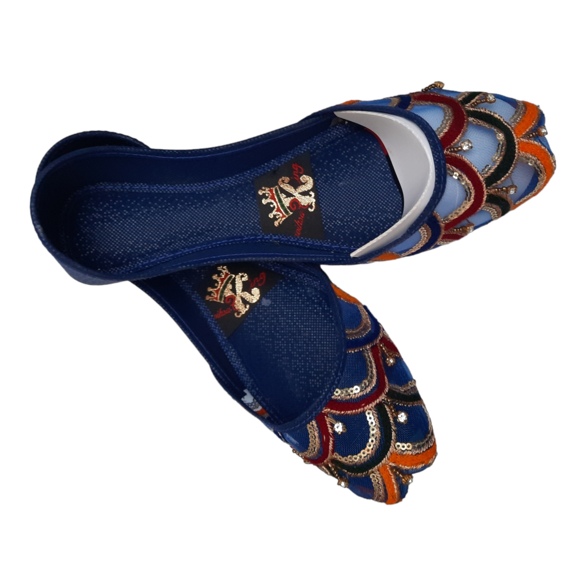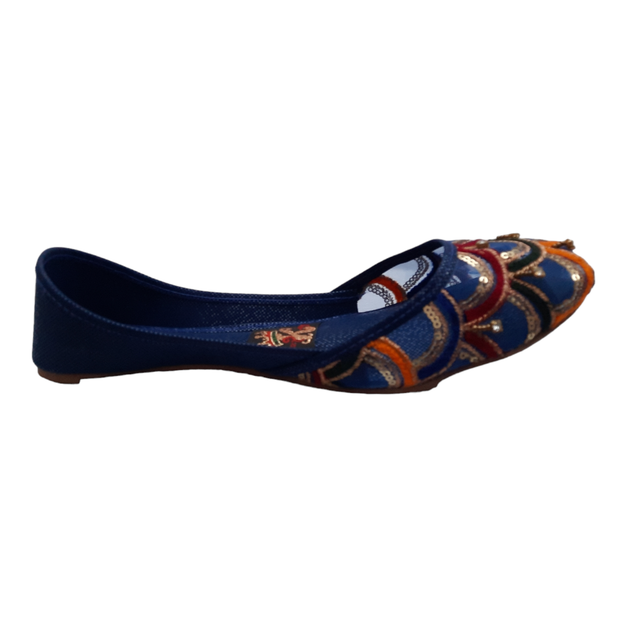Introducing Jaftri, the expertly crafted Blue Multi Embroidery Khussa designed for women who appreciate a touch of elegance in their footwear. With its rich blue color and inner padding, this versatile shoe is perfect for both casual and formal occasions. Limited time offer, get yours now and elevate your style with comfort!