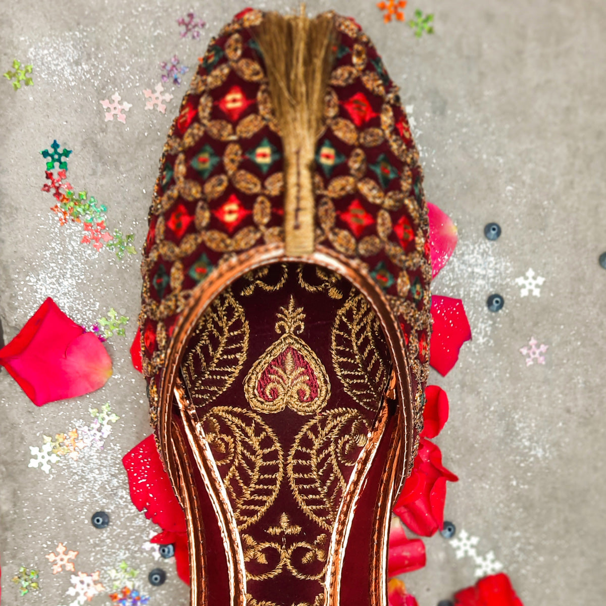 Elevate your style with Zarinpa, the expertly crafted khussa for women. Featuring a beautiful multi-color design and intricate embroidery, this formal footwear is perfect for any occasion. The inner padding adds extra comfort, making it a must-have for your wardrobe. Make a bold statement with Zarinpa!