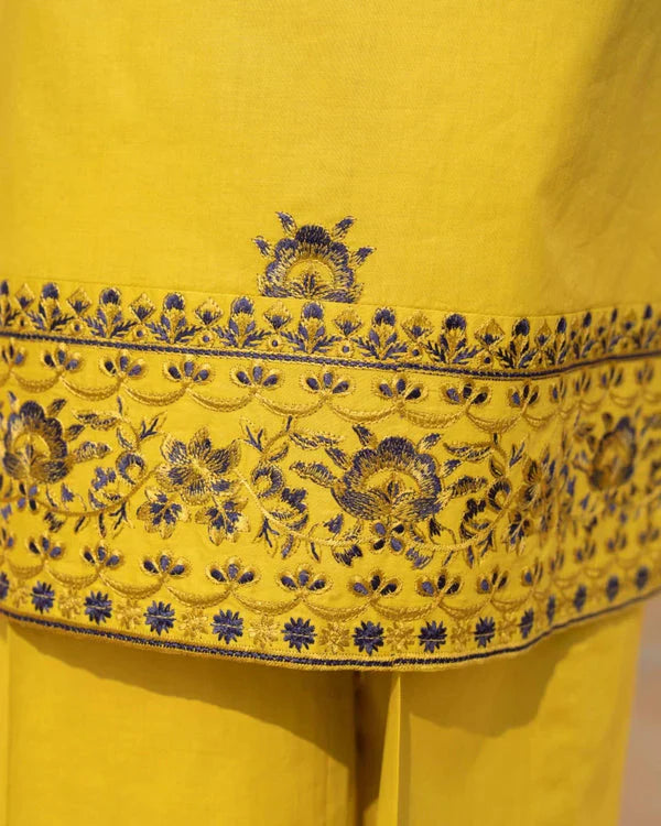 Step into the season with Golden Aura – an elegant 3-piece stitched ensemble that exudes timeless sophistication. Designed in premium soft lawn, this mustard-colored beauty is detailed with delicate embroidery across the neckline, sleeves, and hem, making it a must-have for your summer wardrobe. A contrasting navy blue embroidered dupatta brings a rich, graceful finish to the entire look.
