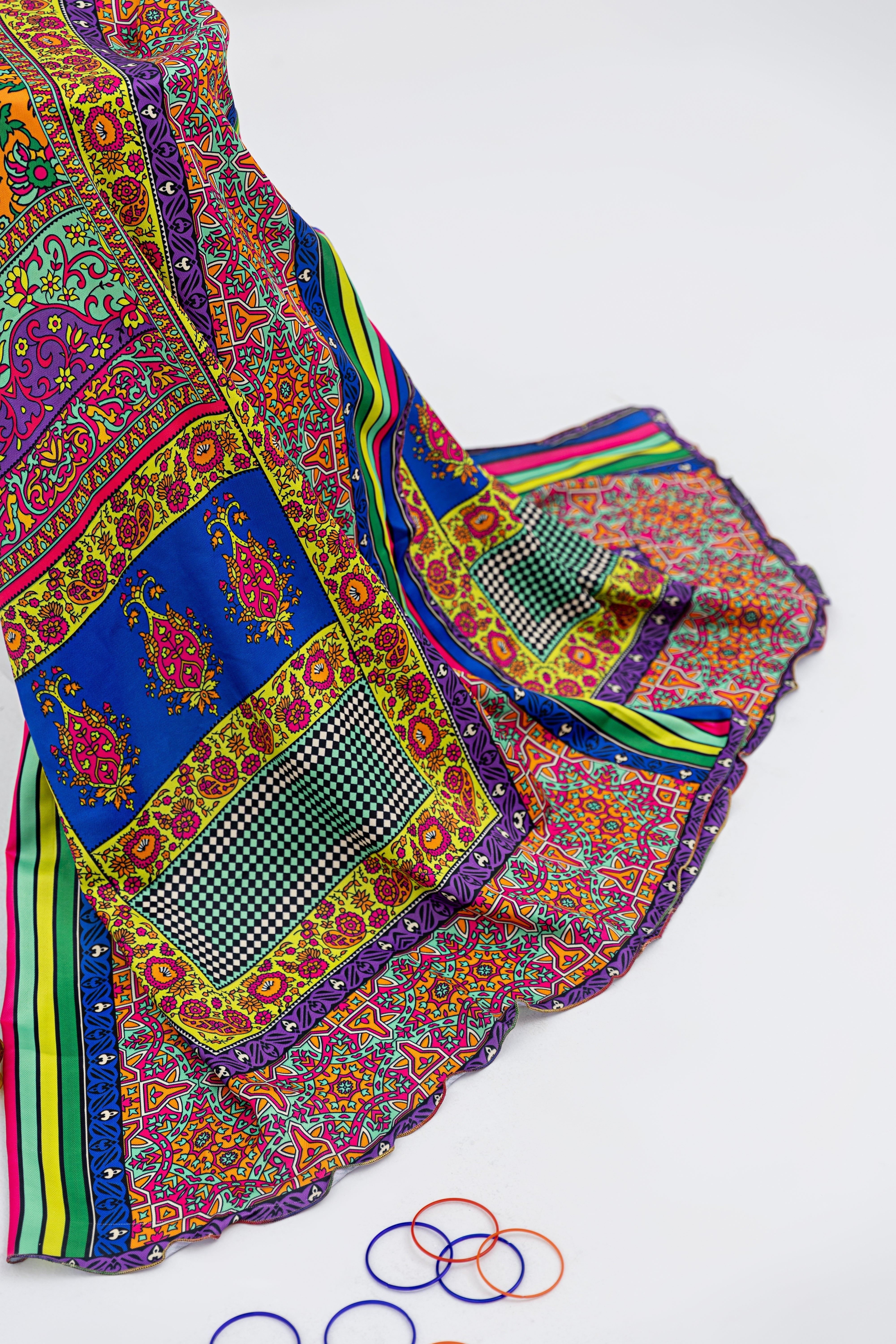 Step into a world of elegance and grace with our exquisite Mehek Shwal. Perfectly crafted to enhance your wardrobe, this stunning piece combines traditional artistry with contemporary flair.