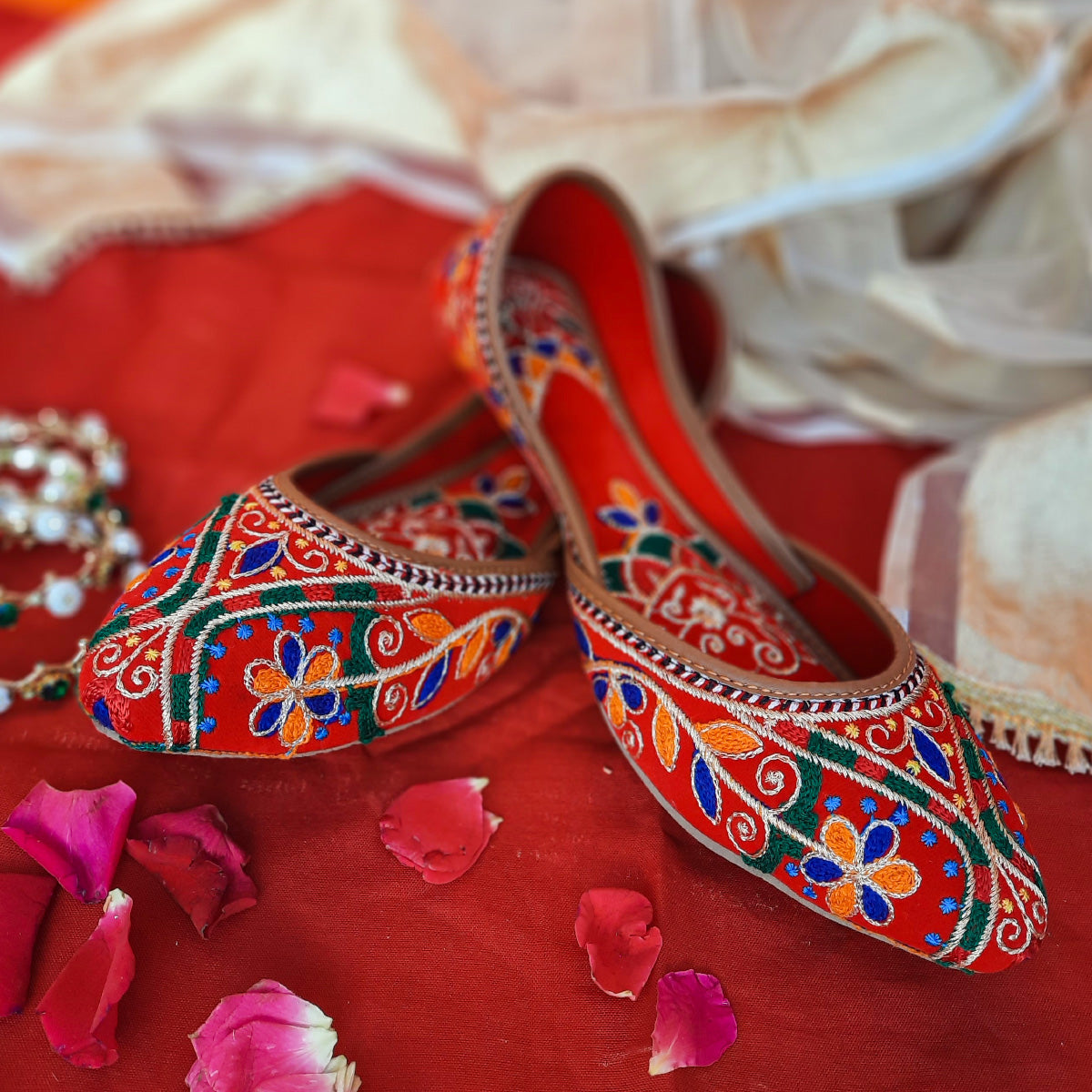 Step out in style with Marjaan, the fearless footwear choice for women! Our Multi Embroidery Khussa boasts a bold red color and intricate design, making a statement wherever you go. The inner padded sole ensures comfort while adding a touch of class to your look. Dare to stand out with Marjaan!